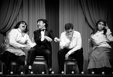SEXO A Comédia – aborda de forma leve e divertida um dos mais polêmicos assuntos de todos os tempos. Seu texto é dividido em quatro esquetes onde o trabalho dos atores é valorizado por um figurino básico de smoking e alguns poucos adereços e se desenrola sobre um pequeno palco de cabaré, com lampadinhas e tapete vermelho que criam todo e qualquer clima para a performance.